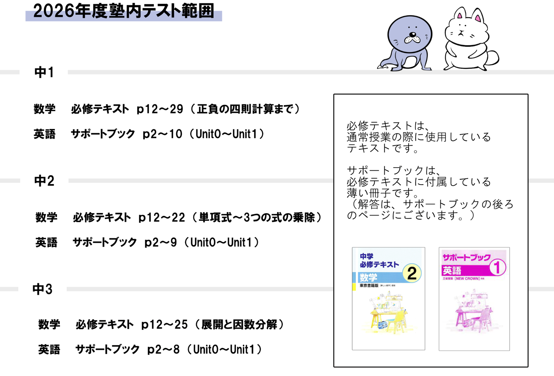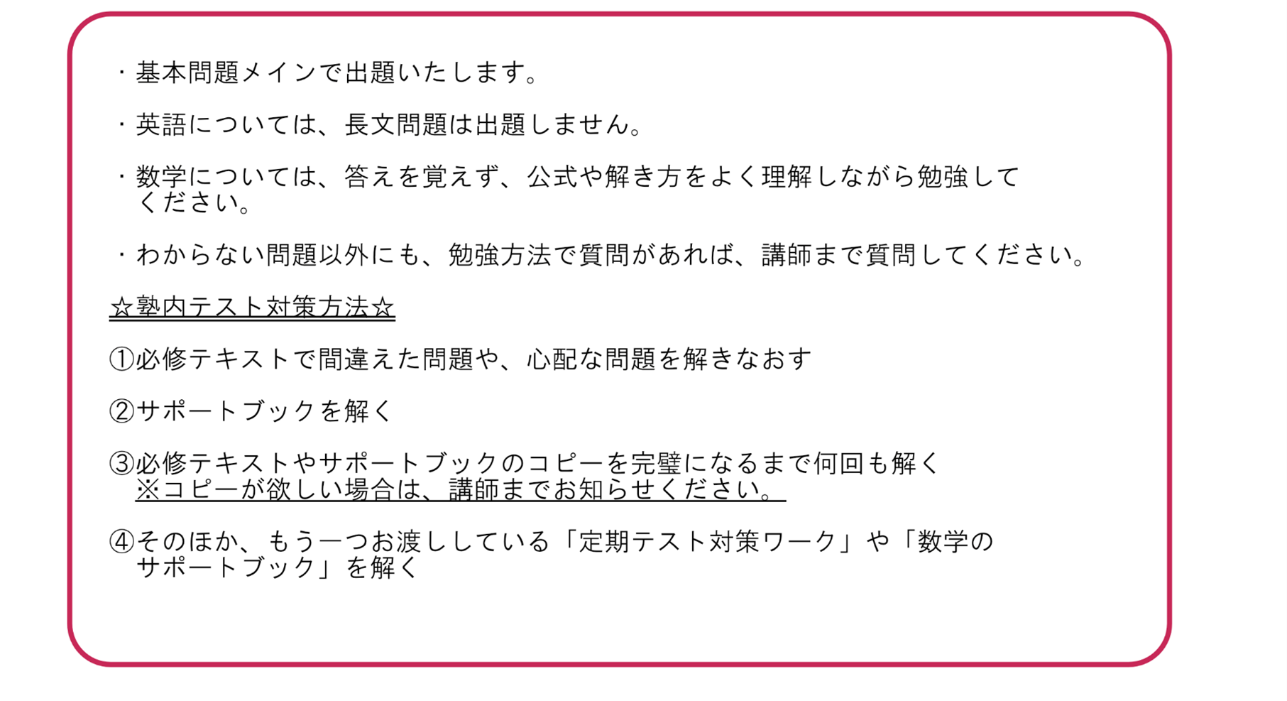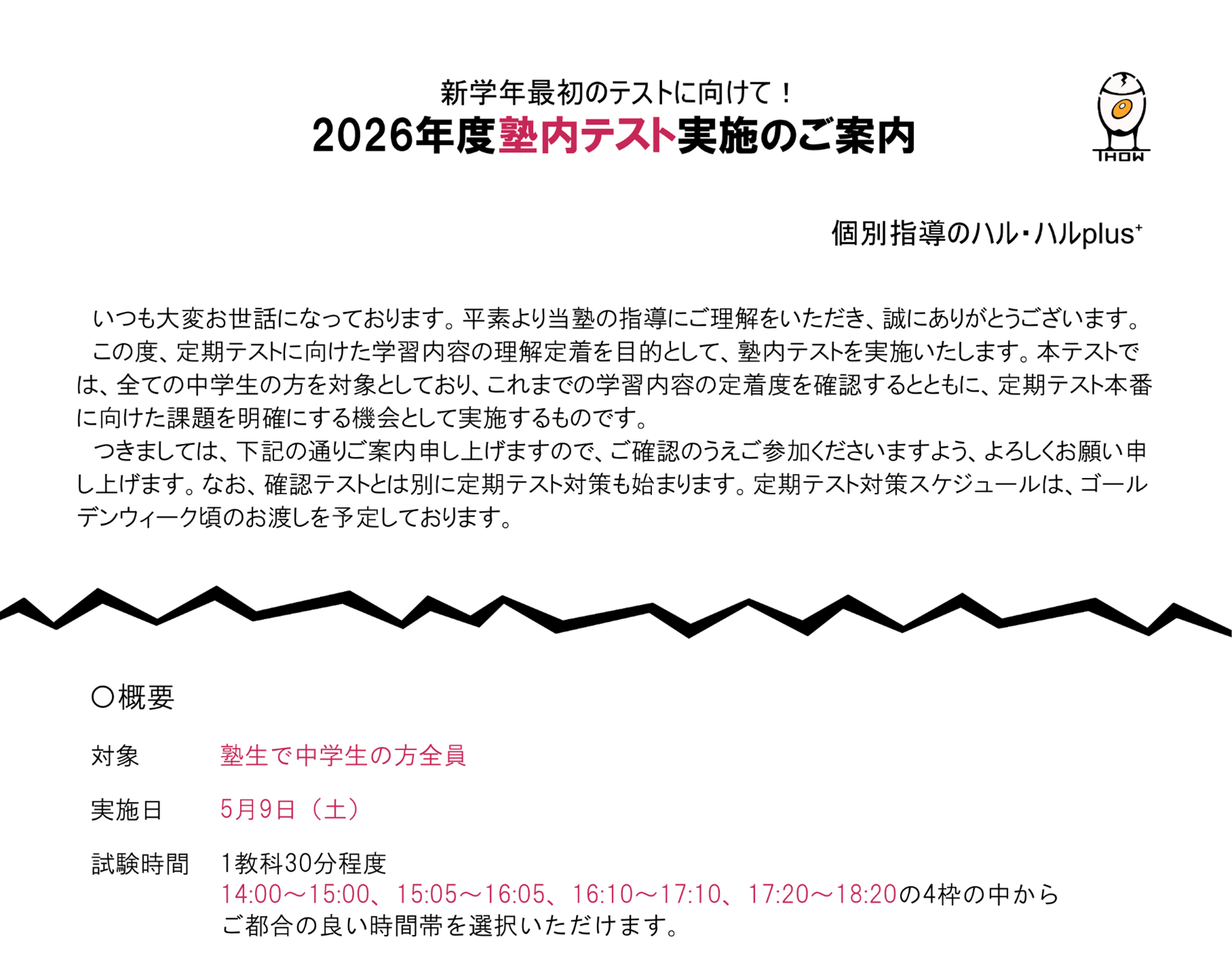 ② 塾内テストのお知らせ