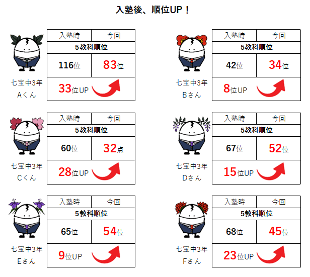 七宝中2年:入塾時40位⇨23位(過去最高)達成!