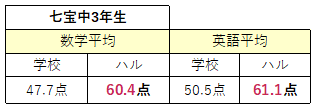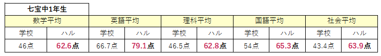 七宝中1年・・・数学92点、数学88点、数学79点など 英語93点、88点、87点など