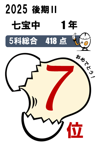 七宝中3年→五教科総合順位 9位達成