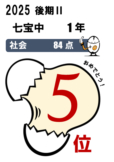 七宝中1年→五教科総合順位 8位達成